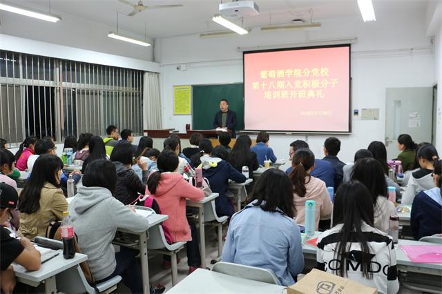 2016年3月30日,党校葡萄酒学院分校第十八期入党积极分子培训班顺利开班,经过严格遴选的48名入党积极分子参加培训。学院党委副书记邓亚丽主持开班典礼。