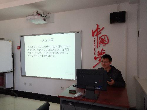 近日,葡酒大学生第二党支部在党团活动室开展学生党员讲党课系列政治理论学习活动,党支部书记赵星宇主持会议。