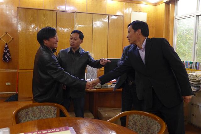2015年11月5日,合阳县杨武民县长、郭云峰副县长、县农科局王万民局长及县果业局李龙局长等一行,来我院看望我校合阳试验示范站首席专家李华教授、专家(站长)王华等教授。王华院长陪同杨武民县长一行到葡萄酒学院新楼实验室、教师办公室参观,并详细介绍各层实验室的布局情况。参观过程中,杨武民县长饶有兴趣的对正在做试验研究生进行了询问和了解。随后李华教授、王华教授、院党委胡俊鹏书记、副院长房玉林教授及驻站老师等人与杨武民县长一行进行了座谈,并就2016年校合阳葡萄试验示范站开展各项工作进行了沟通和交流。