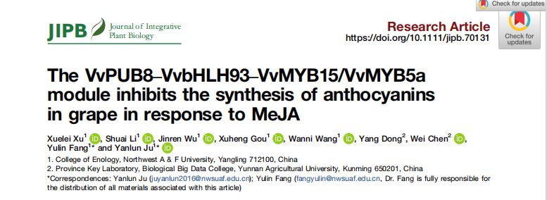 西北农林科技大学葡萄酒学院博士研究生徐学蕾为论文第一作者,房玉林教授和鞠延仑副教授为论文的共同通讯作者。云南农业大学董扬教授和陈玮教授也为本项研究提供了支持与帮助。该研究得到了国家自然科学基金(32372645)、云南省生物种子产业及农产品精深加工专项(202402AE090004-02)、云南院士专家工作站(202305AF150112)、国家现代农业产业技术体系(葡萄)(CARS-29-zp-6)等项目的资助。