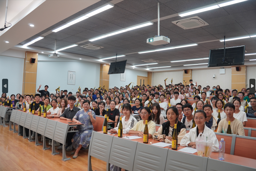 正值学校90周年校庆及中秋节来临之际,学院还为全体新生发放了由匿名校友捐赠的农专珐琅干白葡萄酒。王雅楠结合校友捐赠初心和事迹,向同学们详细介绍了“農專”二字的来源含义,将一瓶瓶饱含校友深情厚谊与产业使命传承的专属校庆纪念礼送至每名新生手中,希望大家以优秀校友为榜样,潜心专业钻研,接好兴农强国的接力棒,饮水思源,以奋斗和努力回馈母校和学院培养。