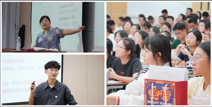 为扎实做好2024级新生入学教育,帮助新生尽快适应大学生活,顺利开启大学生活新篇章,中秋节前夕,学院于北校8T10教室组织召开2024级本科生年级大会。新生辅导员王雅楠、张世航以及全体2024级本科新生参加。