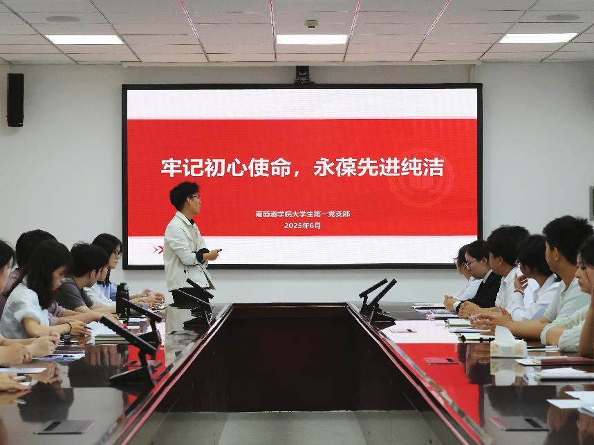 为深入贯彻深入贯彻中央八项规定精神学习教育,做好毕业生党员教育,增强支部凝聚力。6月6日晚,葡萄酒学院大学生第一党支部在615会议室举办毕业生党员座谈会暨专题党课,支部书记郭长江主持会议。