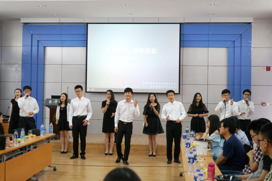 西安交通大学阿卡贝拉合唱团献上的歌曲串烧,葡萄酒学院学生祝悦献唱的《如果云知道》,西安交通大学交响乐团带来的乐器合奏《千本樱》使我们真正体会到“红酒在左,音乐在右”的美妙。伴随着美妙的音乐,在陶老师的讲解与指导下,全体同学共品尝了四款美酒,其中包括一款由我校葡萄酒学院名誉院长李华教授亲自酿造的干白葡萄酒。