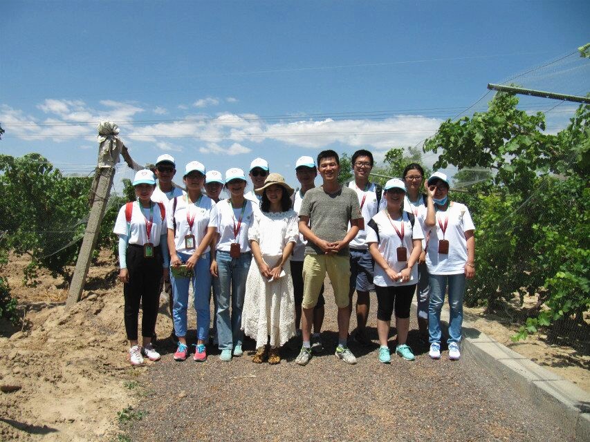 在中午的简单休整后,我们前往酒庄总工程师--毕业于西北农林科技大学葡萄酒学院的98级吴鸿福师兄所在的办公室,吴师兄就酿造工艺,各类酒款、酿造理念及专业人才规模为大家作介绍。吴师兄强调,作为一名酿酒师,一定要用饱满的热情,用心去酿造每一瓶酒,做出自己的风格和特色。获得一手资料后,我们又在吴师姐的带领下参观了葡萄庄园的种植基地,对园内葡萄品种的生长特征及酿酒特性进行了初步了解,同时对所学知识有了新的体会。