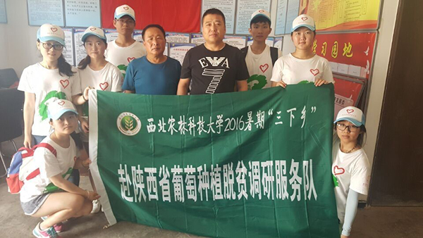 2016年7月18日,由葡萄酒学院秦义老师指导、赵星宇老师带队的赴陕西省葡萄种植脱贫调研服务队前往陕西省渭南市白杨村进行调研。本次调研目的是深入农户,调查了解当地成型的葡萄产业区下的农户葡萄种植情况。本次调研我们采访到了当地村民数名及白杨村村委会党支部书记兰登攀。