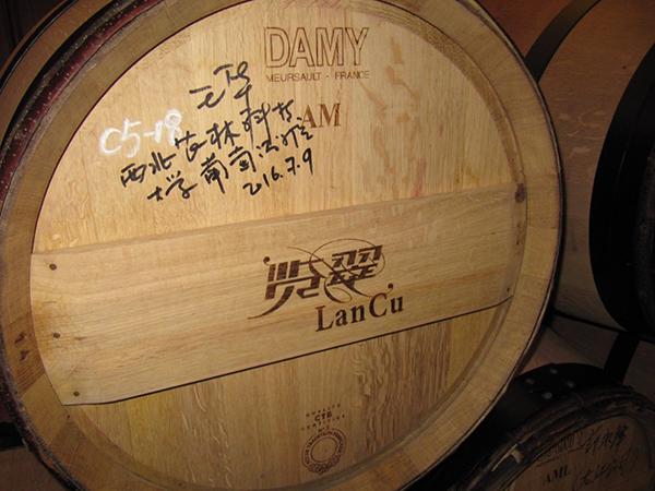 有葡萄酒学院王华院长签名的橡木桶