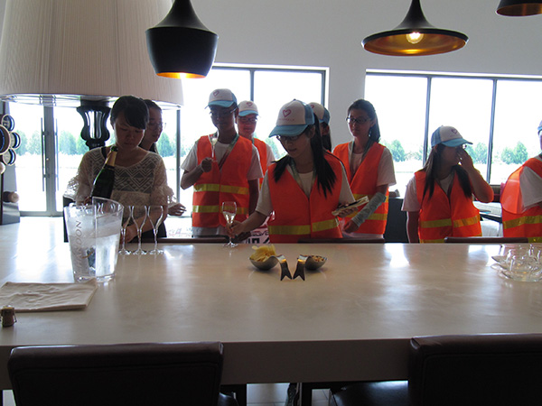 作为本次酒庄行中唯一一个主打起泡酒的酒庄,夏桐显得特点鲜明,也让人印象深刻。起泡酒制作工艺也和别的葡萄酒有所不同,需要经过二次灌装,摇瓶等等步骤,我们也依次进行了了解。