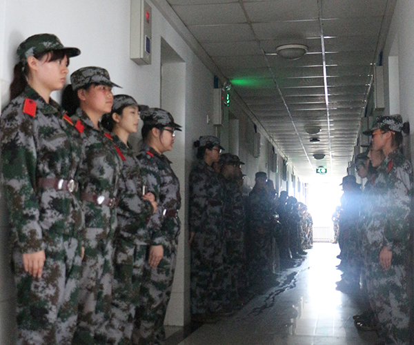 各宿舍长在之前已经接受了教官事无巨细的内务培训,并且用本子记录了内务整理的注意事项,用手机拍下了标准宿舍的样式。我院每个宿舍的小葡萄都在各自舍长的带领下井然有序的整理着。枕头、被子、军装在床上各居其位、立定站好,拖鞋、便鞋、脸盆在床下向右看齐排列成行。床单平整如无波水面,桌面整洁如戈壁沙滩。扫地、擦地、叠被子、摆水壶,小葡萄们互帮互助,忙的不亦乐乎。大家都在努力为自己和室友创造着更整洁、更舒适、更有军队作风的生活环境。