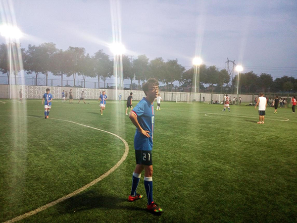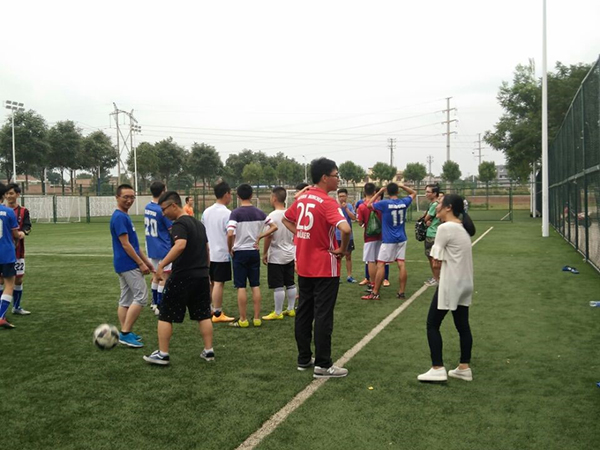 队伍划分上,大一人员不变,学院足球队员则是自由上阵,经过简单的热身后,正式开始比赛。