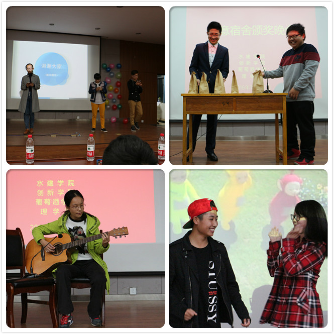 为了更好地表彰创意宿舍大赛的获奖选手,宣传创新、创意以及环保的理念,鼓励更多的在校大学生展示自己的独特思维和才艺特长,10月22日晚上七点,由葡萄酒学院、理学院、水建学院和创新学院联合举办的创意宿舍大赛颁奖典礼在理学院e602报告厅隆重举行。本次颁奖典礼面向四院全体参赛宿舍,葡萄酒学院团工委书记赵星宇、水建学院团工委书记王鹏飞和创新学院团工委书记尹博彦及16级辅导员张瀚文应邀出席,并对参赛宿舍进行点评、指导。典礼上各获奖宿舍依次展示了他们的创意理念和才艺特长,充分展现了我校学生良好的精神面貌和青春的朝气蓬勃。