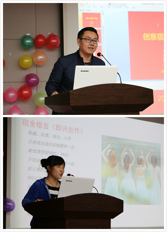 其中,葡萄酒学院获奖的三个宿舍带来了极具特色的宣讲,获得了场下观众的一致好评。温馨甜美的505宿舍不仅展示了她们复古的地中海风宿舍,更深情朗读了赠给舍友们的情书,并且进行了吉他弹唱的表演,体现了她们多才多艺的一面。个性十足的511宿舍PPT制作精美,讲解员也是饱含深情且不失风趣幽默,宣讲结束后还带来了合唱Counting Stars,场下的观众也都被感染,一起唱了起来。活泼欢乐的518宿舍可爱的宿舍装扮和PPT打动了全场,不仅“春田花花幼儿园”的创意让大家赞叹不已,她们带来的舞蹈更是极富童真童趣,阵阵欢笑在报告厅内回荡。当然,其他学院也进行了创意十足的宣讲,体现了他们的创新精神和团结互助。