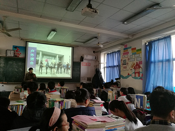 在本次活动的负责人的带领下,我们一行人来到高三班级中,从于右任先生创办我校说起,介绍我校的大楼、大师以及大爱,让同学们充分了解与感受到我校的综合实力与人文关怀。我们也向他们讲述了我校的科研成果--克隆羊、西农苹果、土豆炖牛肉等以及周尧教授、王辉教授等大师的先进事迹,同学们聚精会神地听着,时不时报以哄堂大笑。同时我们也展示了我校丰富的课余生活与美丽的校园景色,在同学们看到校园美景的一阵阵赞叹声以及收到来自西农的小纪念品地喜悦感中结束了宣讲。班级班主任亦给予我校及本次活动很高评价。
