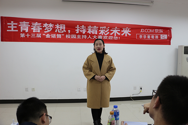 三月十九日,由校团委主办,葡萄酒学院承办的第十八届校园之春文化艺术节之第十三届“金话筒”校园主持人大赛初赛在葡萄酒学院六楼会议室举办。大学生艺术团主持队艺术指导宫政,广播站节目部部长柴嘉轩,第十一届“金话筒”大赛金话筒得主何昭磊,第十二届“金话筒”大赛金话筒得主钟庆涛、铜话筒得主苏睿恒担任评委。