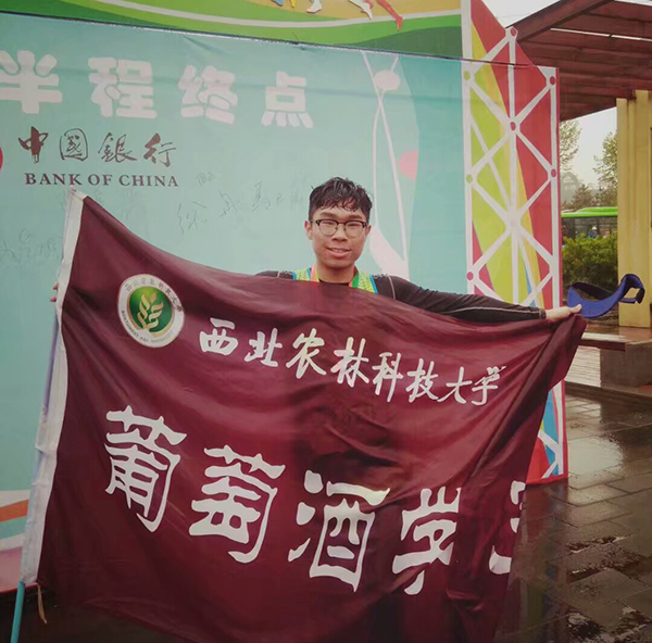 为了给参赛选手提供力所能及的服务,在2016级辅导员李雅男老师的带领下,学院在南校区图书馆附近设置加油站,学院其他老师也全程亲临现场和60余名志愿者在这里为参赛选手们加油鼓劲,学院加油站的同学排成一个整齐的队形,挥舞葡萄酒学院院旗,用踢腿和与参赛选手一起击掌的方式热情地为他们加油,参赛选手们也热情地回应。往来过往的行人们都停下来驻足观看拍照,这极大的体现了葡萄酒学院师生倾心服务每一位学生的精神。