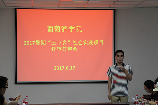 为引导学院大学生将学习理论知识与社会实践相结合,全面发展、学以致用。6月17日晚,葡萄酒学院在六楼615会议室举办了2017年暑期“三下乡”社会实践项目评审答辩会。葡萄酒学院党委副书记邓亚丽、惠竹梅教授、团工委书记赵星宇、辅导员朱美蓉和李雅男担任评委出席了此次答辩会。