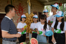 顶着烈日,吴先生带领我们游览葡萄园。出于我队成员对葡萄园西瓜的好奇,吴先生热情的摘西瓜给大家吃,西瓜虽然只有六分熟,但是口感清凉甘甜,十分解暑。这些都是葡萄园营销特色的体现。半个小时的参观后,吴先生带着队伍离开了葡萄园,结束了对葡萄园的实地考察。