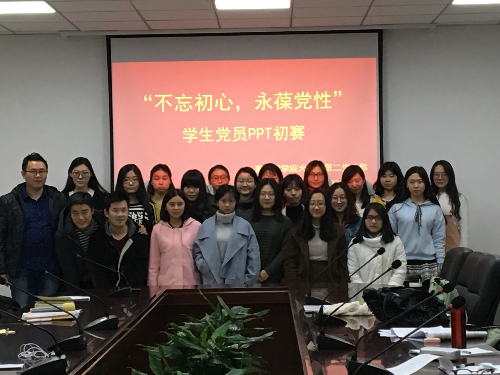 为深入贯彻党的十九大精神,进一步加强学生党员的党性修养,提高其思想政治素质,提升党员的先锋模范性,11月27日晚,葡萄酒学院大学生第二党支部在学院615会议室举行了“不忘初心·永葆党性”学生党员PPT大赛初赛。