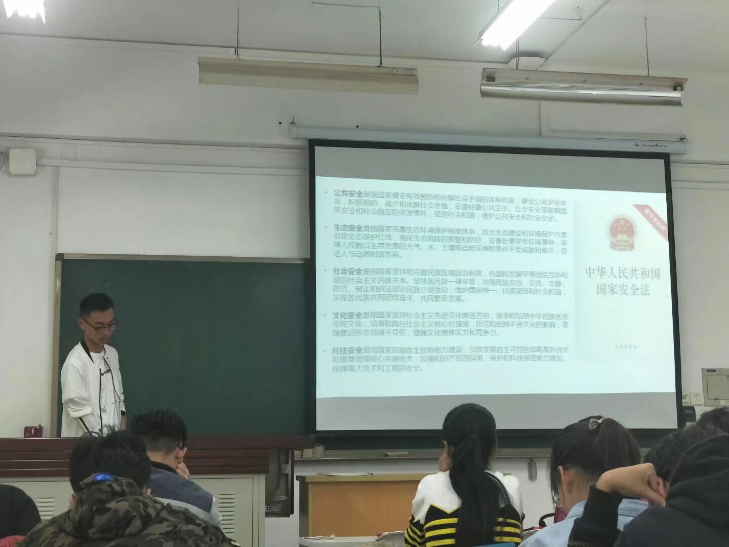 2018年4月15日是《中华人民共和国国家安全法》颁布实施以来的第三个全民国家安全教育日。为了响应国家政策要求,进一步增强同学们的安全防范意识,提高应对突发事件能力,防患于未然,我们班通过自拟活动标题的形式引起同学们多本次活动的重视,同学们也就“如何宣传该活动”进行了激烈的讨论,纷纷给出了自己的意见,此次活动,让班级的同学深入了解了国家安全对于我们每个人的重要性。
