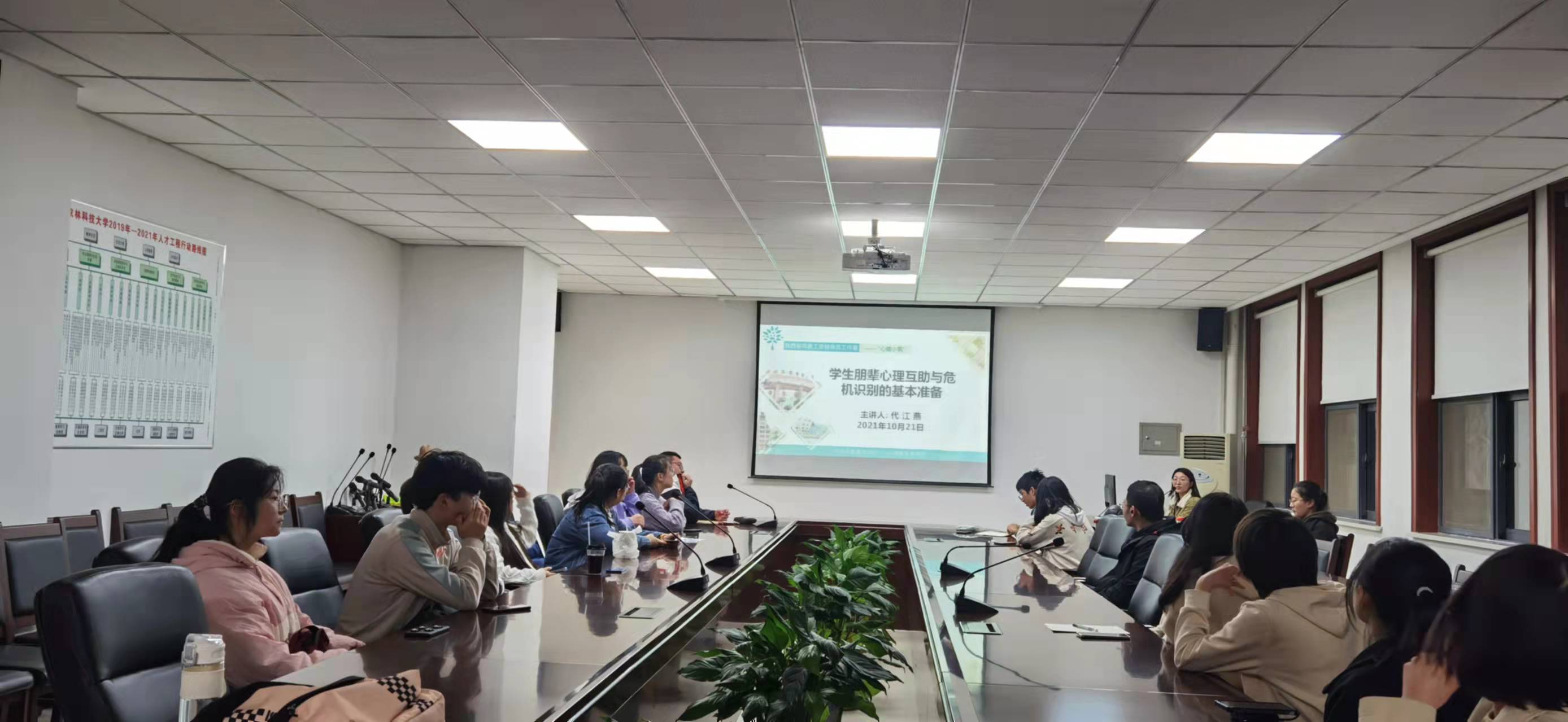 为加强学院心理委员心理健康教育,促进高效开展心理健康工作,保证同学们能够以健康积极的心态面对生活和学习,10月21日晚,我院邀请心理咨询中心代江燕老师为20、21级心理委员们做题为"学生朋辈心理互助与危机识别的基本准备"的培训会议。