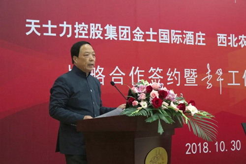 闫希军主席在致辞时表示,西北农林科技大学葡萄酒学院是亚洲第一所专门从事葡萄与葡萄酒研究推广,培养葡萄与葡萄酒生产、营销、管理及科研、推广高级专业人才的学院,被业界人士誉为葡萄酒界人才的摇篮、技术的源泉、产业的支点、文化的平台。西北农林科技大学葡萄酒学院的人才优势、科研实力与天士力发展大健康产业和打造特色高端葡萄酒产品、文化的意愿高度契合。今天的签约和揭牌,标志着双方的合作在原来的基础上又延伸到葡萄酒这一新领域。他相信在双方紧密合作下,金士国际葡萄酒庄一定会酿出更高品质的特色葡萄美酒,成为校企合作推动葡萄酒产业高端化发展的典范。期盼民企、国企共同扛起葡萄酒产业发展的大旗。