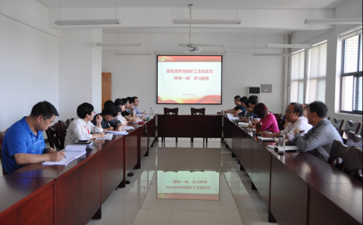 6月3日下午,葡萄酒学院教工党支部进行“两学一做”组织生活会,学院党委书记胡俊鹏同志给全体在院党员讲党课。