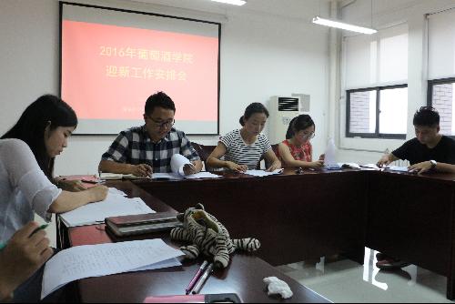 为有序、高效完成2016级迎新工作,从实际行动迎接2016级新同学的到来,葡萄酒学院于8月17日晚七点在学院615会议室召开迎新工作专题会议。会议由学院团工委书记赵星宇老师主持,全体辅导员、2016迎新工作小组成员及班主任助理参加本次大会。学院党委副书记邓亚丽应邀出席会议。