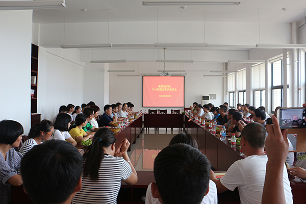 8月20日下午,葡萄酒学院2016级新生家长座谈会在学院617会议室举行。50余位新生家长、2016级班主任、班主任助理、全体辅导员参加座谈会。学院党委书记胡俊鹏、党委副书记邓亚丽、副院长刘树文、房玉林出席会议。会议由学院党委副书记邓亚丽主持。