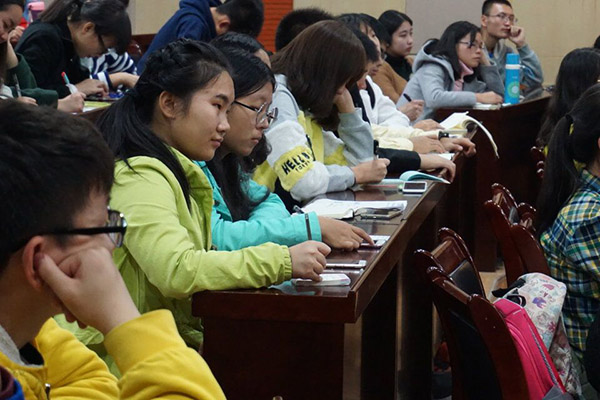 同学们认真听讲做笔记
