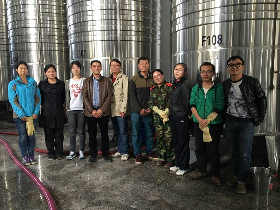 2016年10月16日,葡萄酒学院终身名誉院长李华教授、副院长刘树文教授专程赴内蒙古乌海阳光田宇葡萄酒实习基地,亲切慰问正在这里进行实习的学院师生。他们询问同学们的实习情况,与我院校友黄建清、齐东虎、郭亮就阳光田宇酒庄2016年的酿酒状况进行了交流,并和同学们一同品尝了当年的发酵酒,交流了品尝心得。领导们对学生在乌海的实习工作表示肯定,希望同学们明确自己作为乌海产区实习基地的开拓者和先锋的身份定位,谨记“耕土耕心,酿酒酿人”的院训,以一定要把乌海实习基地建设好的坚定信念踏实工作、认真负责地把剩下的实习工作完成好,为加强校企合作,推进葡萄酒学院校外实习基地建设贡献自己的力量。