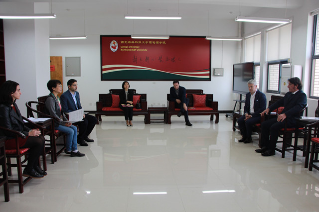 随后在学院学术沙龙王华教授与 LUCA先生等人进行了会谈。王华院长对LUCA 先生一行表示欢迎,表示 “一带一路”是中国目前最高的国家级顶层战略,推动了数十个国家在经济、文化、产业的交流与合作,在这一路两端的中国和意大利,都是具有悠久的历史、深远的文化的东西方文明代表国度。感谢他们愿意来学院开展意大利葡萄酒的教育和推广,希望日后能加强交流合作,可以开展双方的葡萄酒专题交流访学或者建立意大利海外实习基地等。