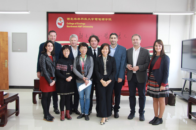 葡萄酒学院院长王华教授会见了 Luca 先生一行,并陪同外宾参观了葡萄酒学院大楼的地下酒窖、酿酒实验室、分析检验实验室、科研平台和研究生修习空间等,并向外宾介绍了学院的布局和科学设计、规划理念。