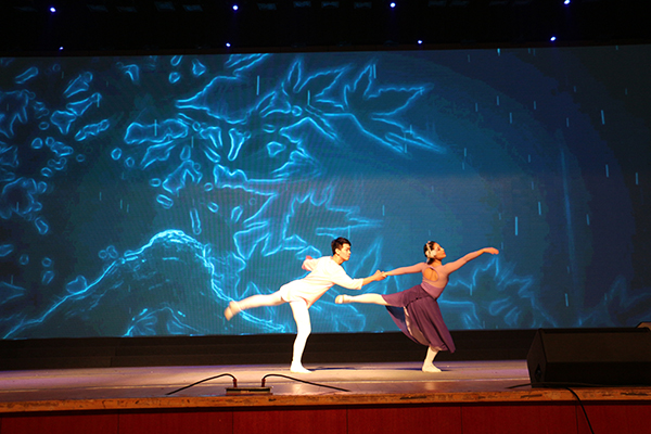 众所周知,舞蹈是表现人类各种激越的情感的产物,它和音乐、诗歌结合在一起,是人类历史上最早产生的艺术形式之一。然而,任何一支舞蹈的成功都需要舞者扎实的舞蹈功底以及不俗的舞台灵性,懂得如何将其细腻的情感通过舞姿传达给观众。“从你的世界路过”和“向天歌”便是将音乐和舞蹈完美地结合在一起,分别紧扣“爱情”和“大自然”这两个主题,对舞蹈意在表达的情感和诉说的故事做出了最好的诠释。其中,“从你的全世界路过”由我院14级郑艺丹同学和15级李享远同学倾情演绎,将初遇时彼此心花无涯的惊艳、热恋时恋人间缠绵悱恻的情感以及不得不分离时花开两朵、天各一方的无奈描绘得淋漓尽致。“向天歌”即一群美丽的小天鹅,或踮起脚尖,游曳在静谧的湖面;或舒展腰肢,起舞于流光的音乐。舞者曼妙的舞姿、默契的配合所塑造出来的精美的舞台效果,是对大自然最好的赞颂。