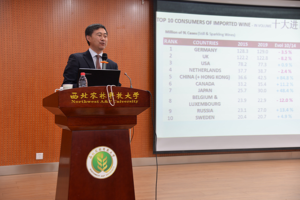 为进一步让葡萄酒院学子了解当前中国乃至世界的葡萄酒产业现状,更好的对自己的未来有明确的职业规划。八日晚,学院特邀请北京农学院食品科学与工程学院副教授、国家一级品酒师、高级酿酒师、我校校友李德美先生于食品学院六楼报告厅为葡萄酒学院师生带来“葡萄酒产业现状与你的职业规划”的主题讲座。讲座由学院党委副书记邓亚丽主持,全院师生积极参与,认真聆听。