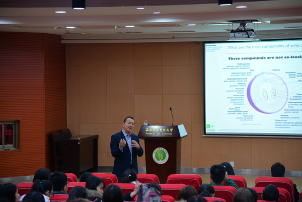 为培养学生国际化就业视野,提高海外硕士申请成功率,12月12日下午,葡萄酒学院特邀请欧盟葡萄与葡萄酒硕士中国区评委的Laurent Torregros先生和Patrice Lallemand先生做留学宣讲会,主要讲述申请欧盟硕士留学的流程与条件。葡萄酒学院刘树文副院长出席并主持了本次宣讲会。葡酒、食品、生命、园艺学院的100余名本科生参加聆听了本次宣讲会。