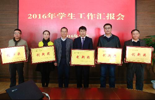 12月27日下午,2016年院系学生工作考评会在国际交流中心210会议室召开,校党委副书记吕卫东、相关单位负责同志担任评委,全体学工干部及辅导员出席参加。 会上,学院党委副书记邓亚丽代表学院做了题为“打造专业学习氛围 助力卓越人才培养”的学院学生特色工作汇报。 经过考评,我院荣获“2016年学生工作创新奖”。