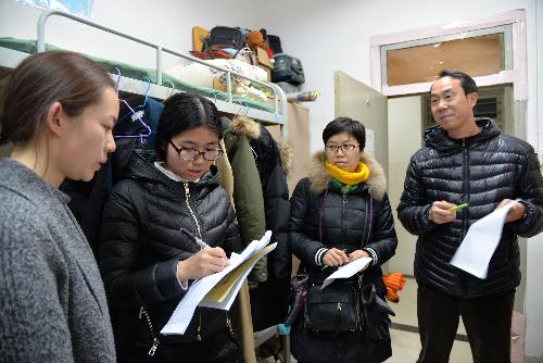 冬季风干物燥,是校园火灾等安全事故的高发期,加之目前学生处于复习备考,安全意识相对淡漠。本着以学生为本,防患于未然的原则,1月4日晚,学院党委书记胡俊鹏、副书记邓亚丽带队,与全体班主任,辅导员一起深入宿舍,对学生宿舍全面开展安全检查和隐患排查。