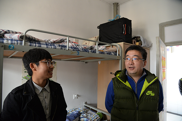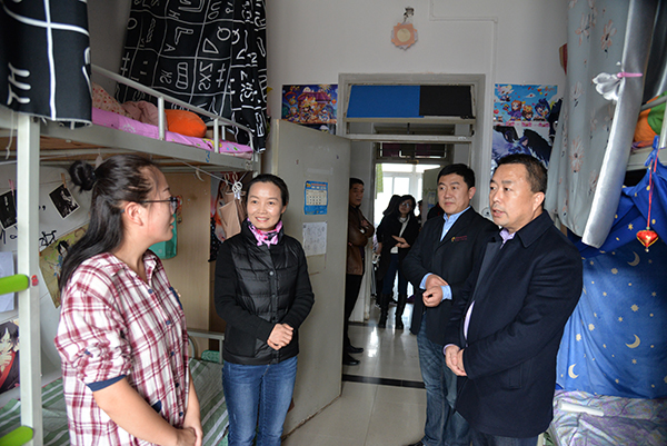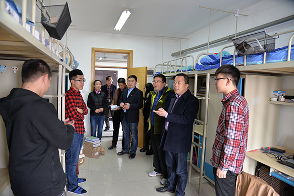 在宿舍,胡书记、房院长详细询问了学生的寒假生活状况,欢迎同学们按时返校开启新学期的学习和生活。胡书记强调,春季学期适合锻炼,希望同学们在完成学习任务的前提下,走出宿舍、走下网络、走向操场,多参加有益身心健康的阳光体育运动,以更加昂扬的状态投入学习和生活。