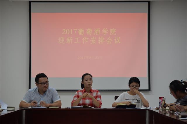 为确保葡萄酒学院2017级迎新工作高效有序的展开,为新生提供全面周到的服务,8月23日晚7点,葡萄酒学院召开2017级迎新工作安排会议与班主任助理培训会。迎新工作安排会议由赵星宇主持,全体辅导员、2017届团学干部及班主任助理参加本次大会。学院党委副书记邓亚丽应邀出席会议。