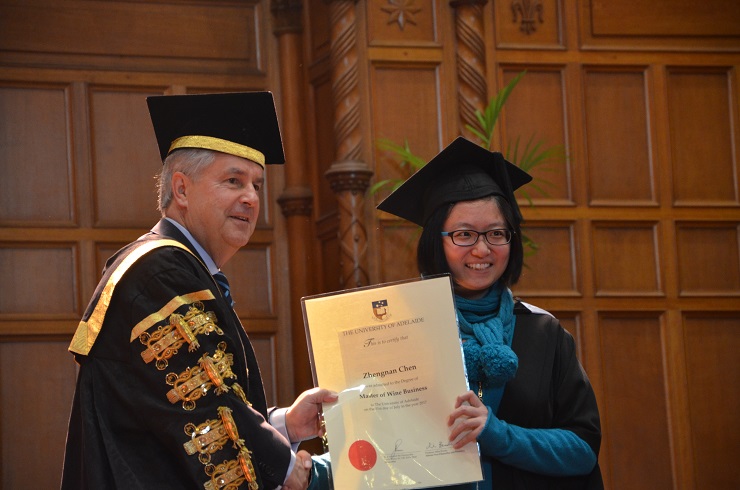 阿德莱德大学校长为陈正楠同学颁发葡萄酒商务硕士学位证书